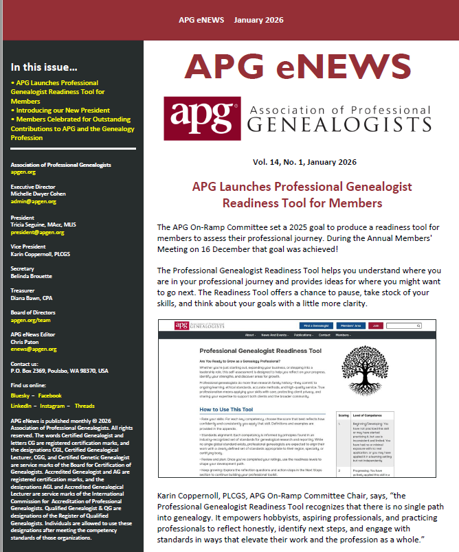Not a member yet? We invite you to check out recent editions of APG eNews—your go-to resource for Association news, industry trends, genealogy events, and career development opportunities.